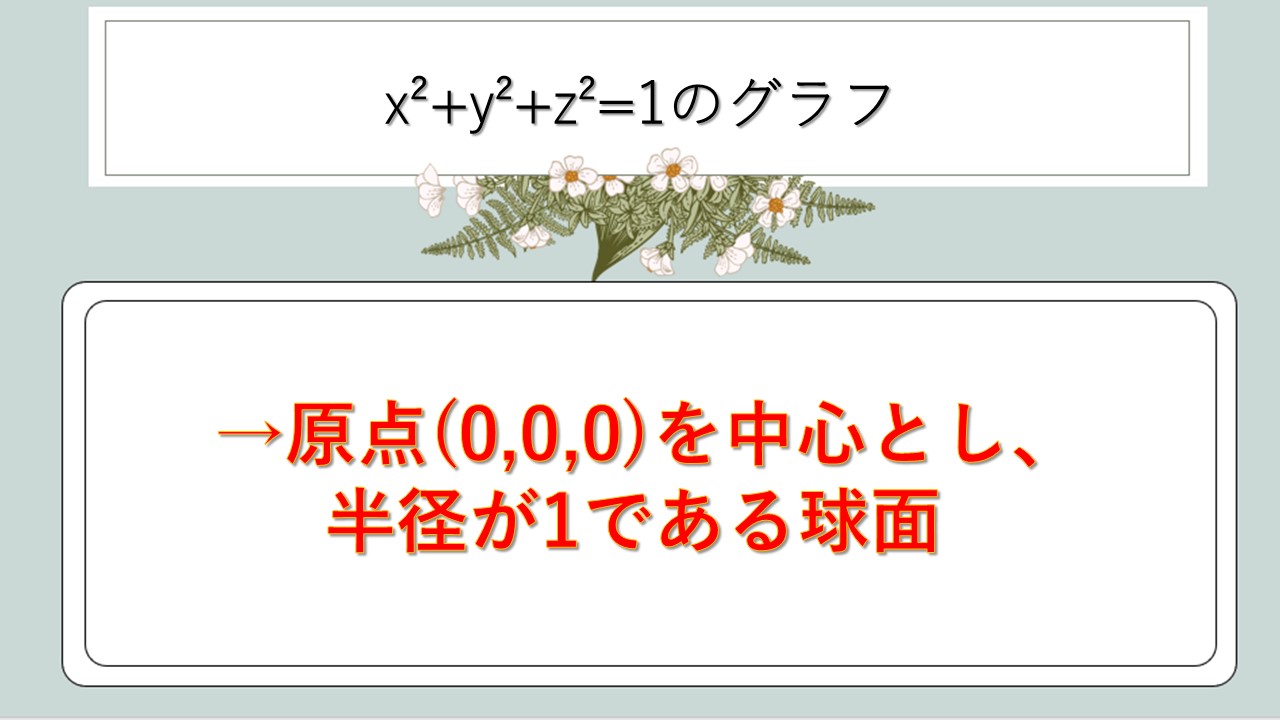 それではまず、x²+y²+z²=1という方程式が表すグラフの正体について解説していきます。