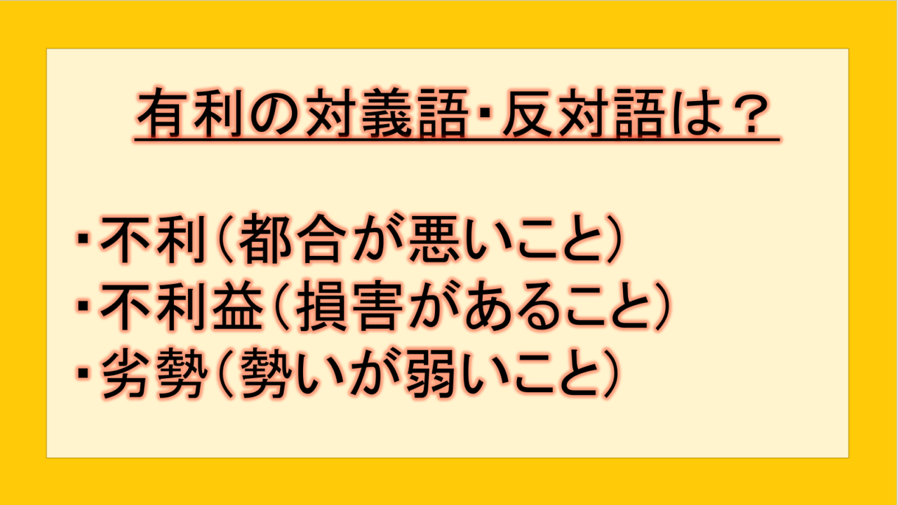 この記事では、「有利」の反対語・対義語について例文も交えて詳しく解説していきます。