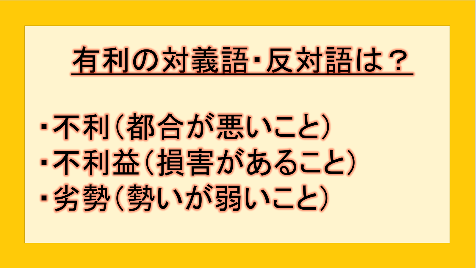 最も代表的な有利の反対語は、