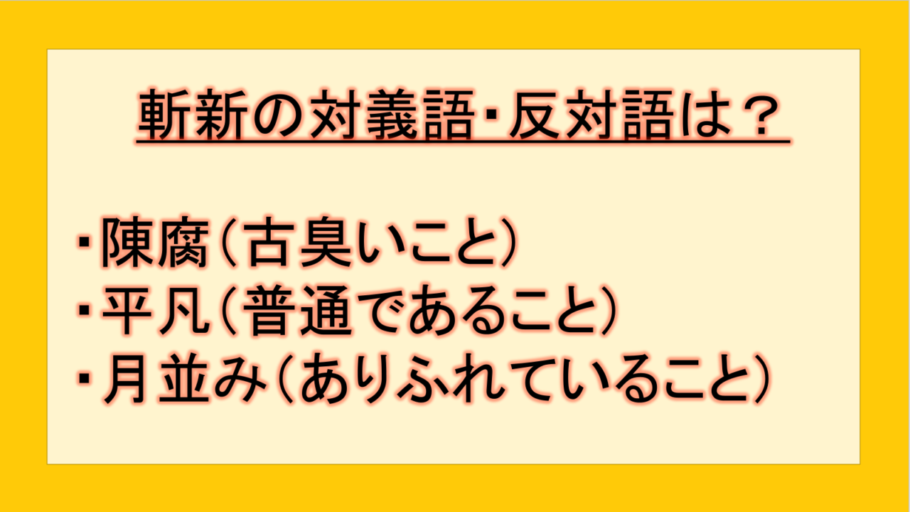 この記事では、「斬新」の反対語・対義語について例文も交えて詳しく解説していきます。